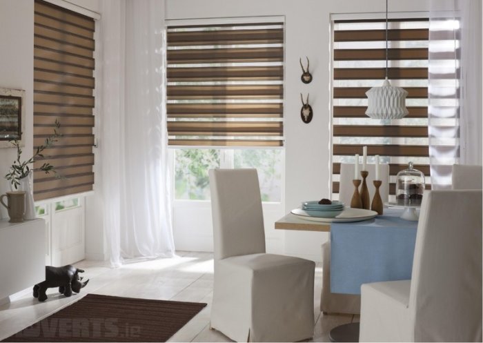 Különlegessége a két egymás előtt mozgatott - fényáteresztő és fényzáró- sávok váltakoztatásában rejlik. Könnyedén szabályozható a beáramló fény, vagy igény szerint akár teljesen ki is zárható. Lehetőség van az anyag teljes felcsévélésére, illetve motorizálására is. Nyílászáróra, oldalfalra és mennyezetre egyaránt szerelhetőek, ezáltal korlátozott helyigény esetén is a legjobb választás lehet.